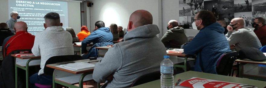 Compañeras y compañeros de las Secciones Sindicales de CGT en Bonnysa, La Alcoyana, Masatusa, Administración Autonómica, Correos, Hospital General, etc. asistieron a este curso, el primero organizado por la Secretaría de Formación de la Federación Provincial de CGT Alicante en el 2022, participando de manera activa en los debates propuestos por el profesor que fue repasando los hitos y leyes que han reducido la negociación colectiva, reconocida por la Constitución, a un paripé controlado por los empresarios que cuentan con la ayuda necesaria de los mal llamados “sindicatos” mayoritarios, en realidad meros agentes sociales que renunciaron hace años a cualquier defensa de la clase trabajadora.