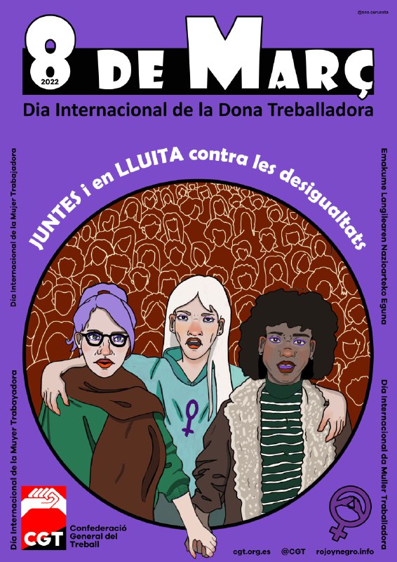 Para la CGT, como organización anarcosindicalista, el 8 de Marzo sigue siendo el Día Internacional de la Mujer Trabajadora, porque en esta sociedad de desigualdades y clasista, la clase trabajadora es explotada y esa explotación se multiplica cuándo hablamos de mujer trabajadora.