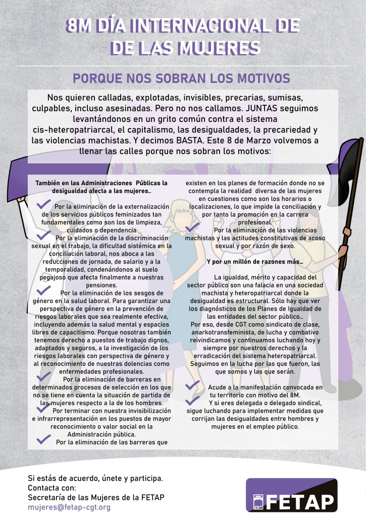 Por eso, desde CGT como sindicato de clase, anarkotransfeminista, de lucha y combativo reivindicamos y continuamos luchando hoy y siempre por nuestros derechos y la erradicación del sistema heteropatriarcal.