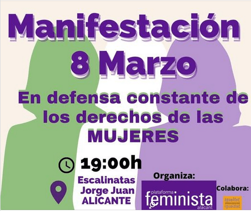 La CGT de Alicante se adhiere a la manifestación convocada por la Plataforma Feminista de Alicante este 8 de marzo a las 19 horas en las Escalinatas del Instituto Jorge Juan de Alicante.