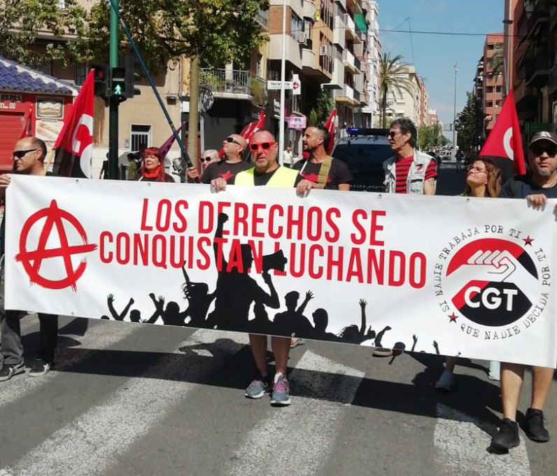 La CGT en Elche salió en manifestación junto a la CNT ilicitana, en el Bloque Anarcosindicalista que partió a las 11 de la Plaza de Barcelona y recorrió distintas calles de la ciudad.