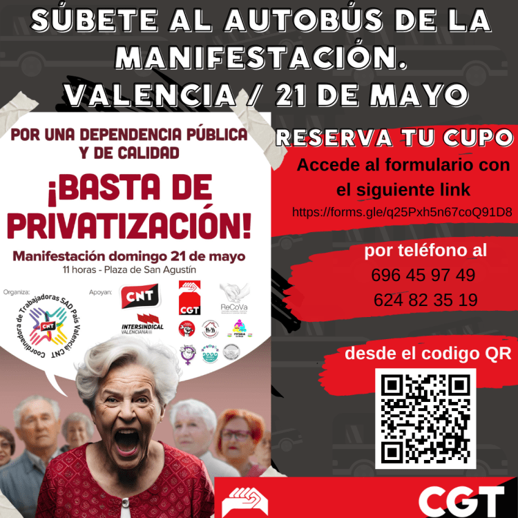 Desde la Coordinadora de Trabajadoras SAD del País Valencià convocamos una manifestación, apoyada por más entidades de nuestro sector junto con los sindicatos CNT y CGT, para el domingo 21 de mayo en Valencià