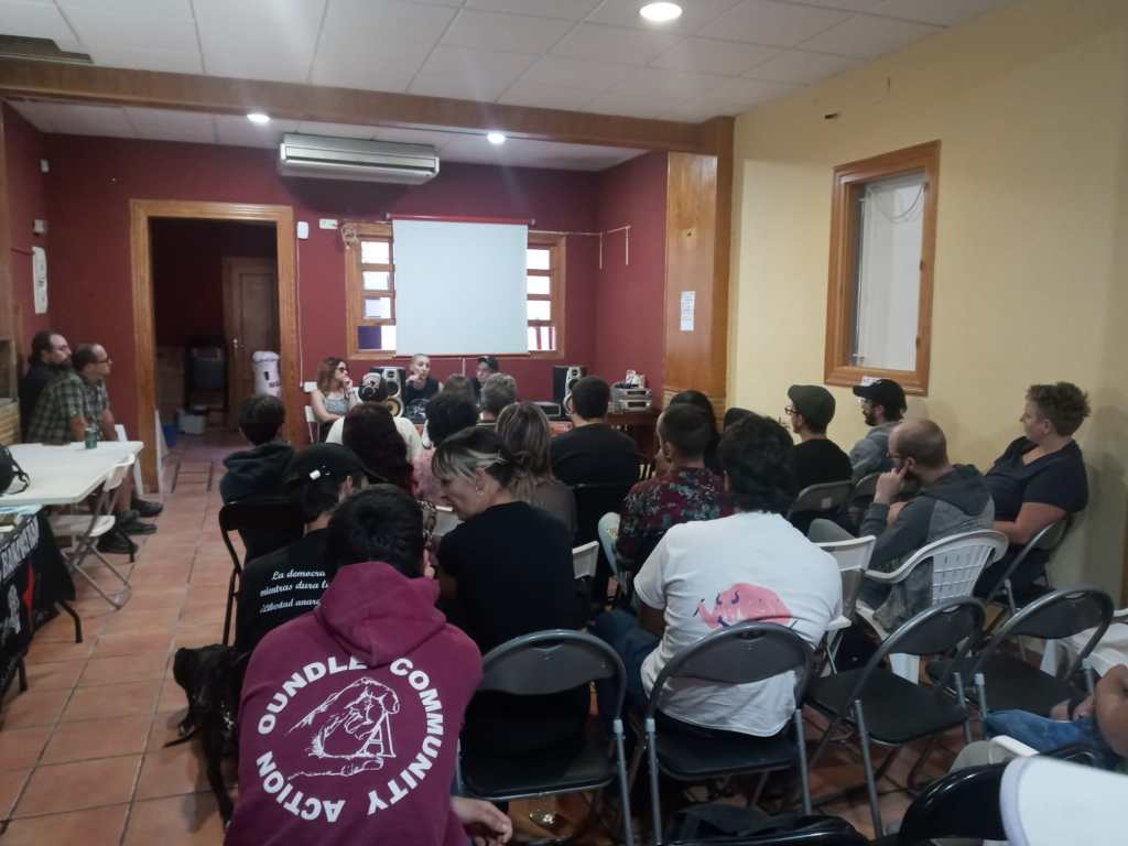Durante toda la jornada, con una pausa para comer todxs juntxs, se sucedieron las presentaciones, charlas y debates. Tras la presentación de la I Jornada Anarquista d’Alacant por parte del colectivo organizador, comenzó la presentación de los compañeros de la Asamblea Libertaria de Lorca y de Liza, que presentaron sus experiencias organizativas en un debate sobre Colectivos anarquistas y proyectos de coordinación. Debate que resultó muy animado y participativo.