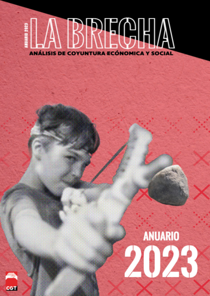 La Brecha es una publicación mensual del Gabinete Económico confederal que tiene como objetivo plasmar las distintas realidades y problemas de la clase trabajadora. El anuario es una forma de recopilar todo el pensamiento publicado y alimentar el debate sindical dentro y fuera de nuestra organización. Como expresa el colectivo editor. “La Brecha es una publicación mensual de CGT en la que tratamos de ofrecer estudios y reflexiones sobre múltiples cuestiones vinculadas a nuestra realidad sociolaboral, dando cabida a diferentes ópticas desde las que enfocar algunos de los principales problemas y retos a los que nos enfrentamos la clase trabajadora. Se trata de una publicación que nació con la pretensión de ser útil para ayudar a comprender la realidad que nos rodea. También con el objetivo de formular y difundir análisis valiosos para la intervención sindical; en definitiva, para la transformación de dicha realidad. En este Anuario compartimos todas las publicaciones del año 2023, con el objetivo de armarnos de análisis, ideas y propuestas para un 2024 combativo. Para seguir en la brecha”.