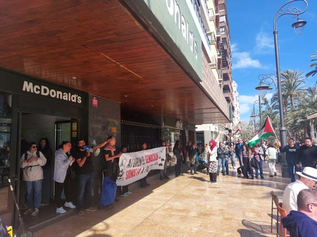 Las Jornadas se cerraron con una acción sorpresa que se anunció sobre la marcha: las y los asistentes se trasladaron a un McDonald cercano donde desplegaron pancartas y denunciaron la complicidad de esta empresa con Israel y sus políticas coloniales.