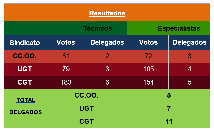 Para finalizar deseamos felicitar tanto a los compañeros de UGT y de CC.OO. por sus resultados y por su trabajo en esta campaña electoral.