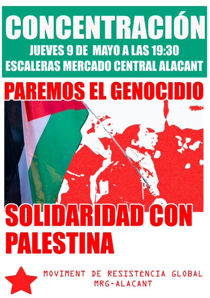 Concentración de urgencia convocada por el MRG en Alicante en protesta por el bombardeo de Rafah, mañana 9 de mayo en las escaleras del Mercado Central a las 19,30 h.