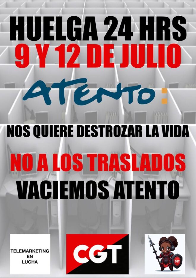 Por ello, no nos dejan otra opción que continuar animando a toda la plantilla de Atento Teleservicios a secundar los paros de 24 horas anunciados para los días martes 9 y viernes 12 de julio.