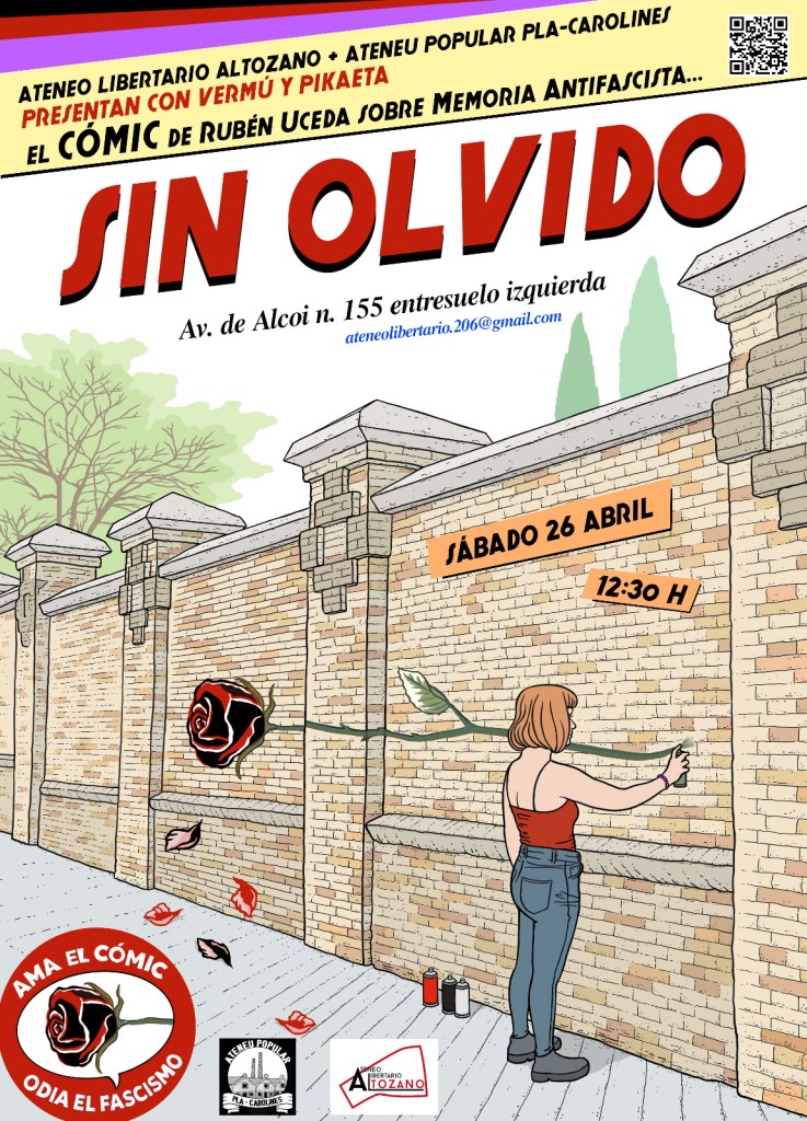 El próximo sábado, 26 de abril, disfrutaremos en el Ateneo Libertario Altozano de la presentación de la novela gráfica “Sin olvido. Un viaje por la memoria antifascista” por parte de su autor, Rubén Uceda.