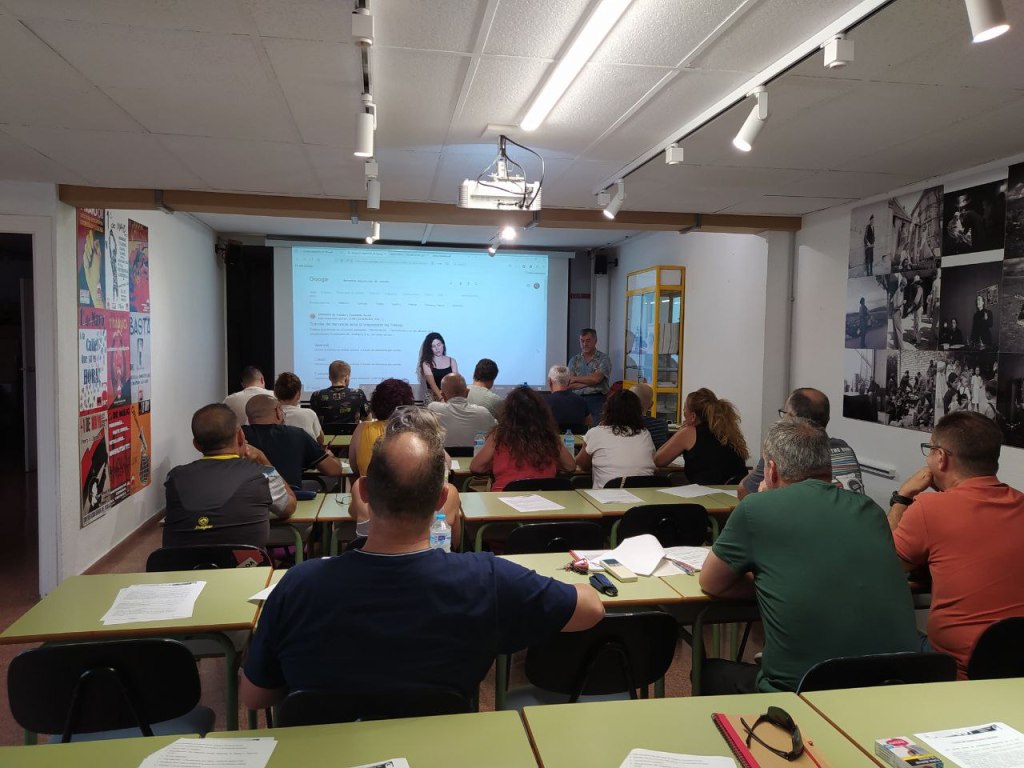 El desarrolló del curso fue principalmente práctico, explicando lxs ponentes las maneras de conseguir que las denuncias presentadas ante la Inspección sean más eficaces o cómo hacer el seguimiento de las denuncias presentadas, los pasos a seguir antes y después de denunciar, etc.