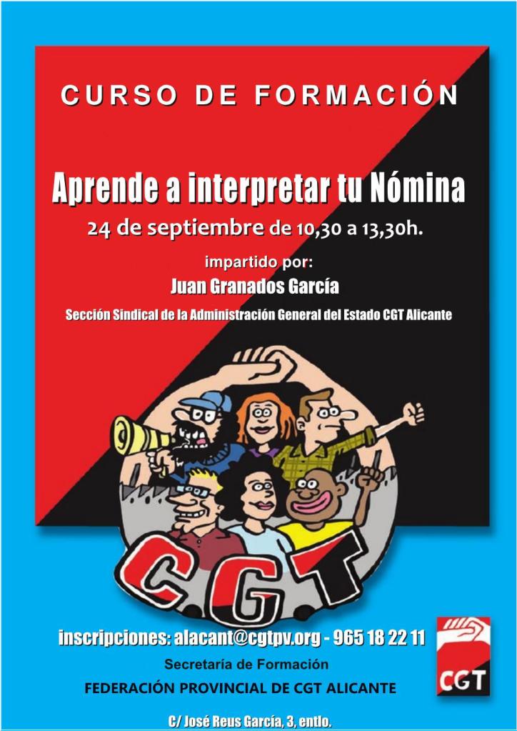 Tras el parón del mes de agosto, la Secretaría de Formación de la Federación Provincial de CGT Alicante retoma sus actividades con la tercera edición del Taller “Aprende a interpretar tu nómina”, destinado a las y los afiliados de CGT Alicante, programado para el miércoles 24 de septiembre en nuestra sede de la C/ José Reus García n. 3 en horario de 10,30 a 13,30 horas
