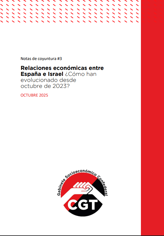 El Gabinete Socioeconómico de CGT ha elaborado una nueva Nota de Coyuntura. Esta vez dedicada a las relaciones económicas entre España e Israel y cómo han evolucionado desde octubre de 2023.
