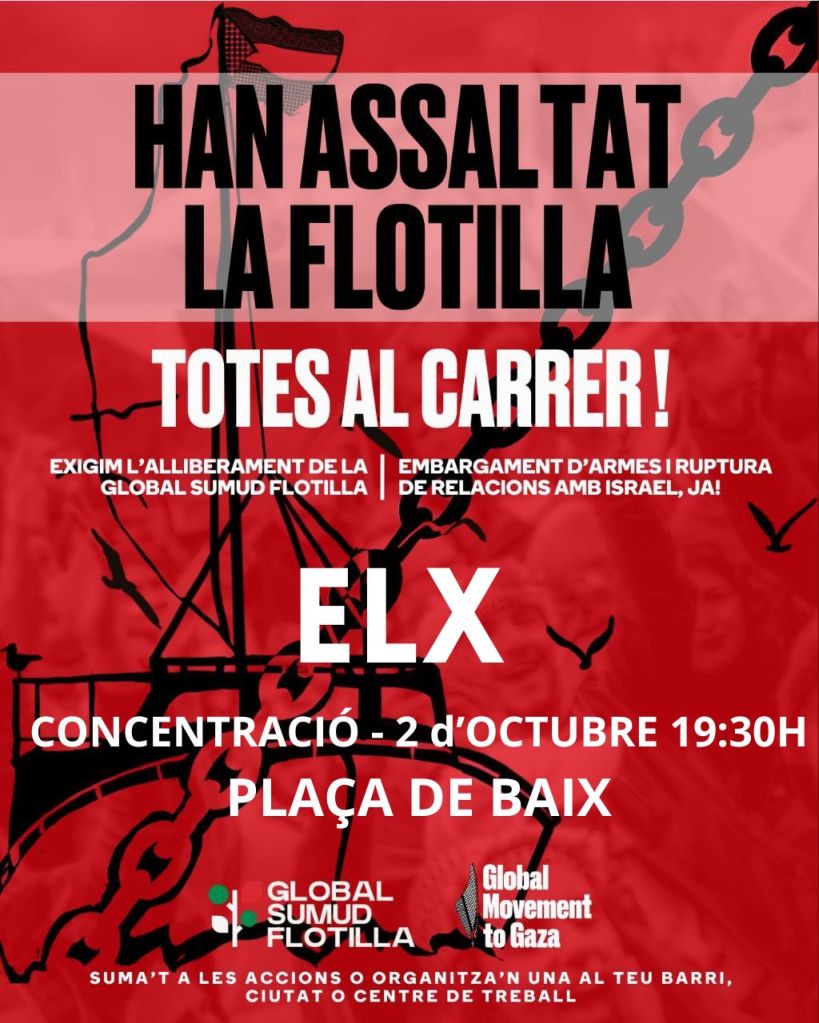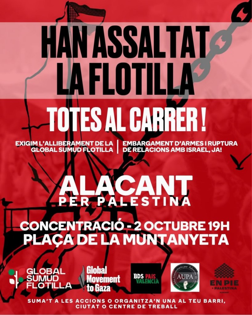 Distintas organizaciones ciudadanas, coordinadas con anterioridad al asalto de anoche a los barcos de la flotilla solidaria con Gaza, convocan a una concentración de repulsa por el acto de piratería del ejercito sionista
