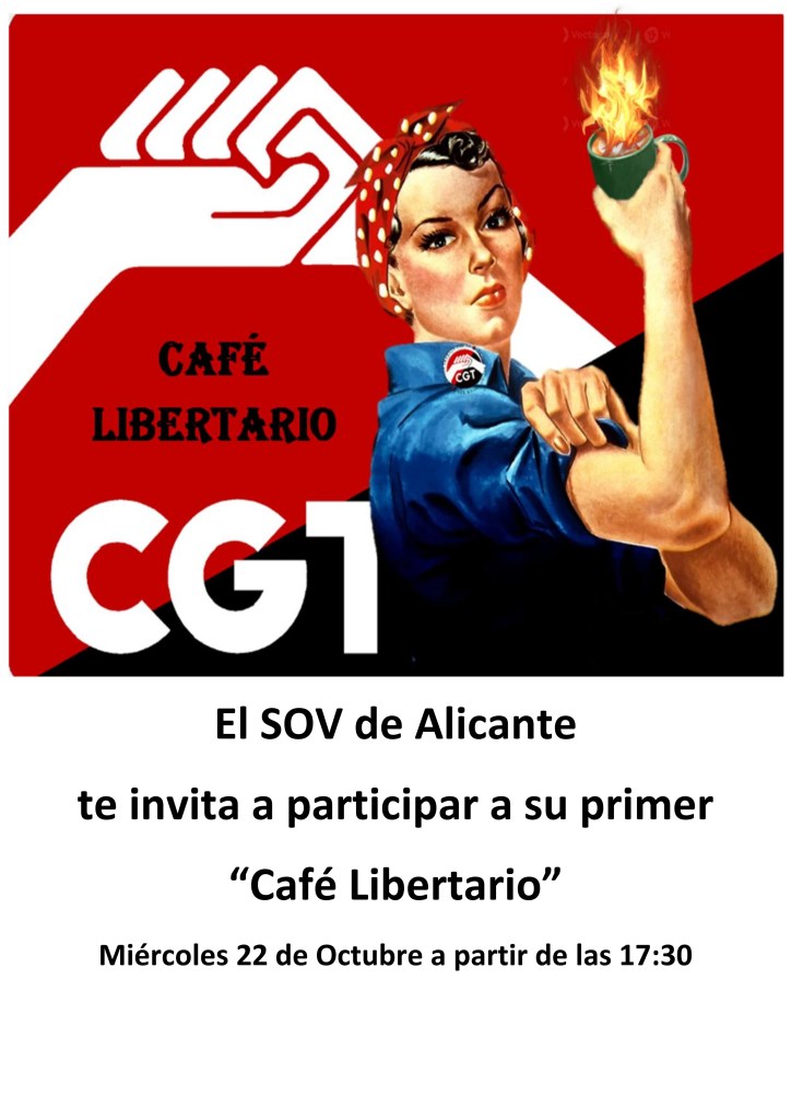 El 22 de octubre a partir de las 17,30 horas ha sido convocado el primer Café Libertario en la sede de la CGT en Alicante (C/ José Reus García nº 3 entresuelo) al que estáis todas y todos invitados.