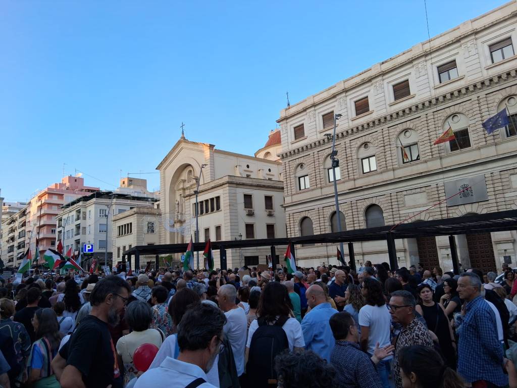 Varios miles de personas se concentran en la Plaza de la Montañeta de Alicante en protesta por el acto de piratería del ejercito israelí contra las y los activistas que pretendían romper el bloqueo genocida en Gaza