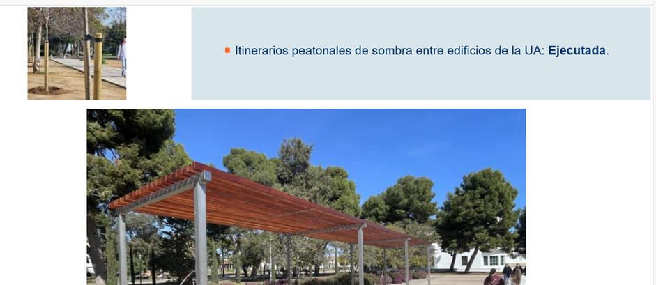 Observamos que, una vez se publican los resultados de las votaciones, no existe información detallada sobre el procedimiento de implementación de las propuestas ganadoras. No se establece un diálogo con las personas que presentaron las iniciativas, ni se facilita información sobre cómo se decide la forma final en que se materializan. Un claro ejemplo de esta deficiencia es la ejecución de la propuesta de 2024 «Itinerarios peatonales de sombra», que contó con una asignación de 25.000€ y cuya única prueba visible es la instalación de una pérgola y algunos plantones de árboles, sin una justificación clara de los costes y del impacto real de la medida.