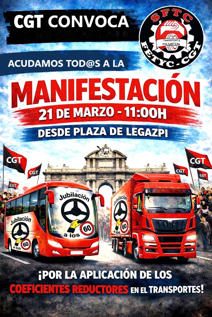 Desde el sector federal de transporte por carretera de la FETYC de CGT, hacemos un llamamiento a todas las personas afiliadas a la CGT en materia de transporte por carretera y urbano, así como a toda aquella persona que quiera apoyar nuestra lucha.
